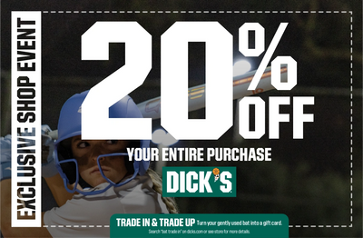 Save the date! Our partner DICK’S Sporting Goods is offering all our members an exclusive discount of 20% off throughout the store! Be sure to grab all the things you will need for the upcoming softball season as well as all the other items that you have had your eyes on! To access exclusive savings, click the coupon linked below. The coupon is valid in-store on the dates above and must be shown at the register during checkout.